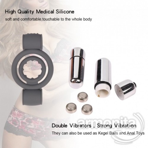 Gri Silikon Çift Motorlu Penis Halkası